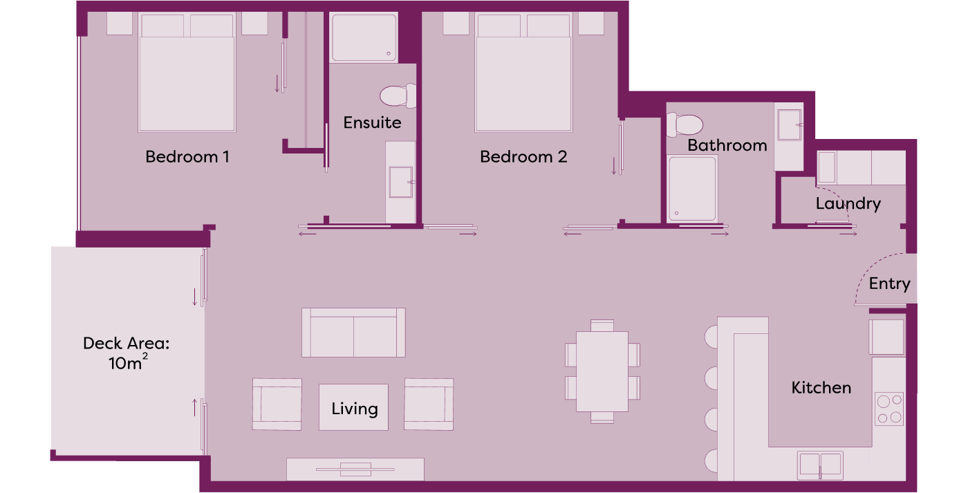 Ruru offers large two bedroom options and with high studs and lots of glass for light-filled, spacious living. Every apartment has a large balcony, so indoor/outdoor living can be enjoyed year-round.